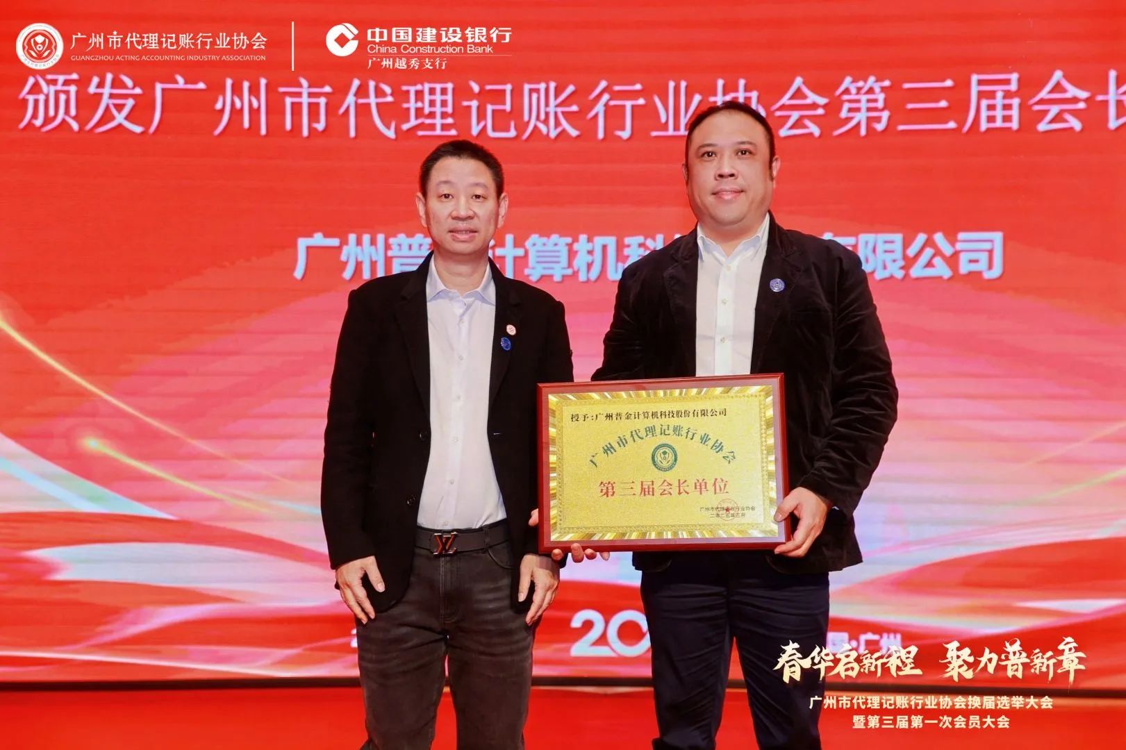 2025年3月20日,广州市代理记账行业协会换届选举大会暨第三届一次会员大会在广州云凯酒店宴会厅成功召开!会上,依协会章程规定经协会全体会员选举,广州普金计算机科技股份有限公司李彬当选为广州市代理记账行业协会第三届会长单位!